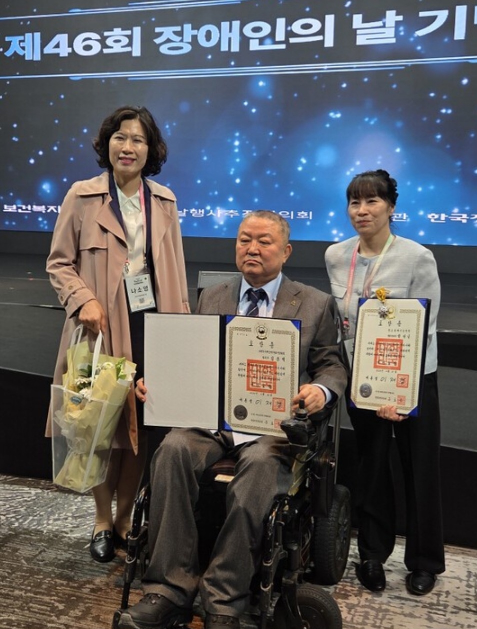 Áö³ 20ÀÏ, ¼¿ï ¿öÄ¿ÈúÈ£ÅÚ ºñ½ºÅ¸È¦¿¡¼ ¿¸° Á¦46ȸ Àå¾ÖÀÎÀÇ ³¯ ±â³ä½Ä¿¡¼ ±èÁ¾Åà Çѱ¹ÁöüÀå¾ÖÀÎÇùȸ Àü³²ÇùȸÀåÀÌ '±¹¹ÎÆ÷Àå'À» ¼ö»óÇß´Ù. Àå¾ÖÀÎ ±ÇÀÍ ÁõÁø°ú ³ª´®¹®È È®»ê, Áö¿ª»çȸ º¹Áö Çâ»ó¿¡ Çå½ÅÇØ ¿Â 20¿© ³âÀÇ °ø·Î°¡ ±¹°¡·ÎºÎÅÍ °ø½Ä ÀÎÁ¤¹Þ´Â ¼ø°£À̾ú´Ù.